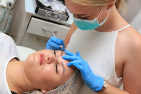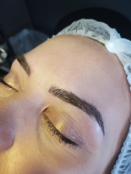 ihrer Masse den natürlichen Härchen der Augenbrauen. Eine natürliche Rekonstruktion oder eine Betonung sehr heller oder schwacher Augenbrauen werden als Ergebnis hierbei erzielt. Da die Pigmente